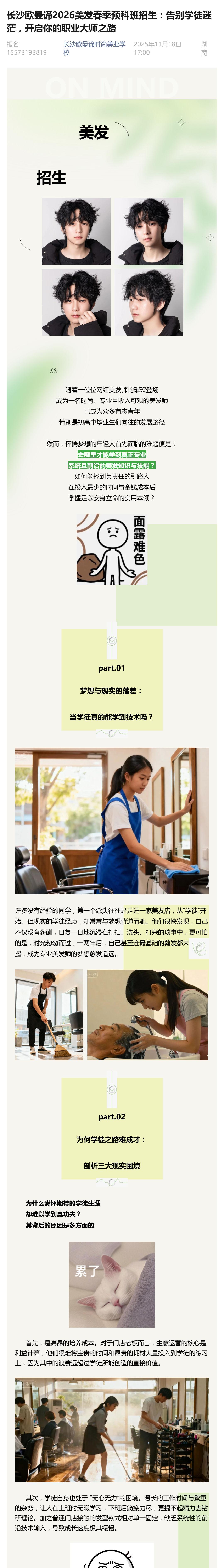 长沙欧曼谛2026美发春季预科班招生:告别学徒迷茫,开启你的职业大师之路