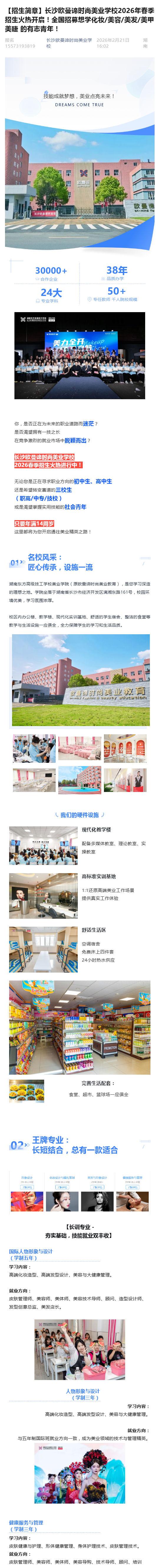 【招生简章】长沙欧曼谛时尚美业学校2026年春季招生火热开启!全国招募想学