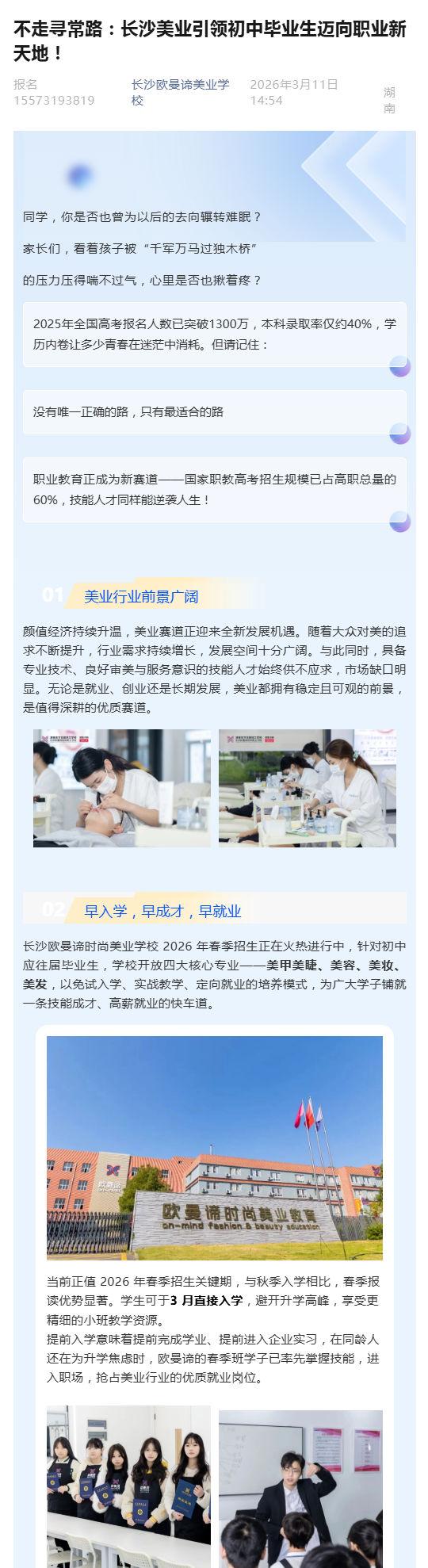 【招生简章】长沙欧曼谛时尚美业学校2026年