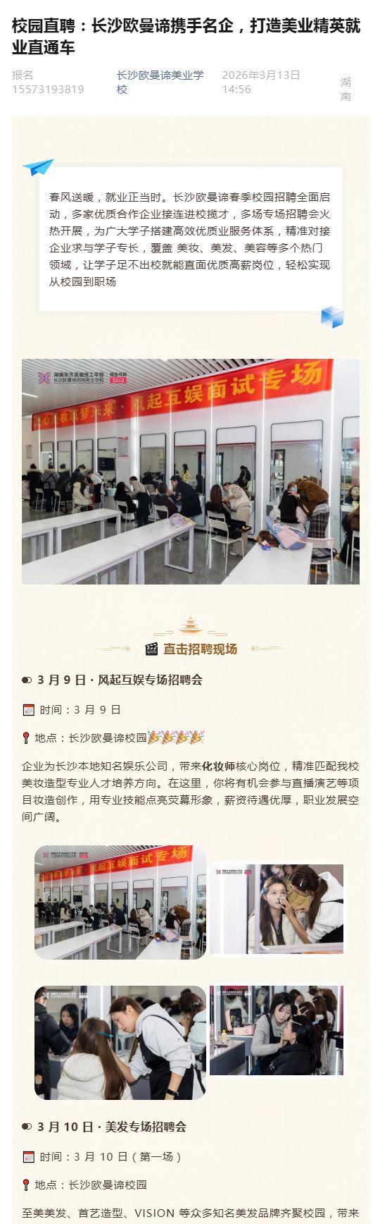 校园直聘:长沙欧曼谛携手名企,打造美业精英就业直通车
